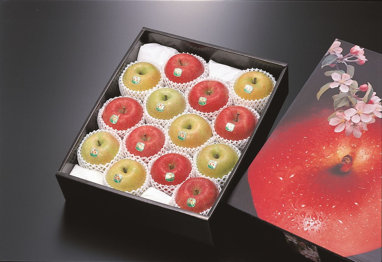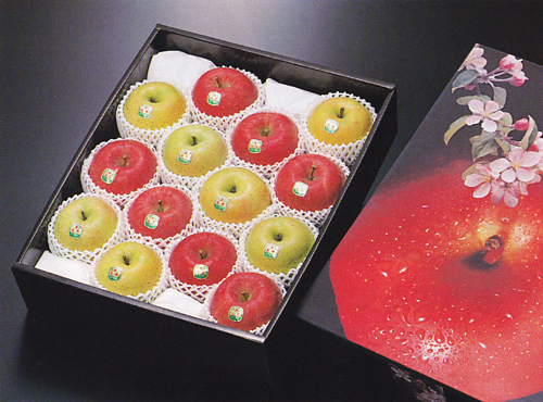 写真は1段詰ギフトBOXです新鮮でまるかじりしたくなるような、沓澤商店の完熟りんごは、津軽の豊かな自然の中でやさしく大切に育てられたおいしいりんごです。